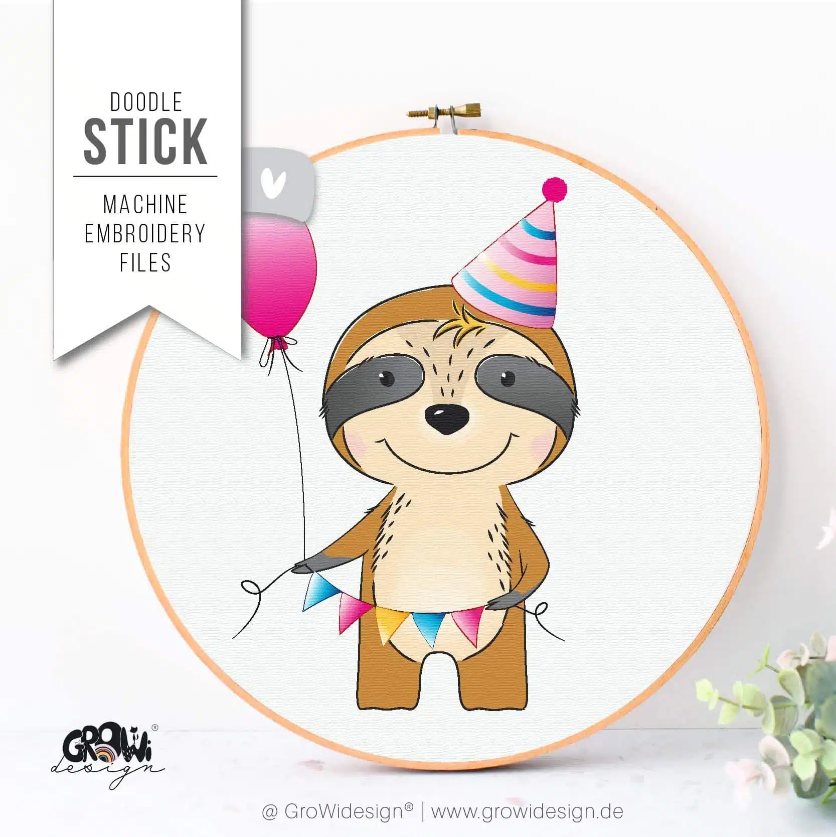 Feier schön mit unserem bday FAULTIER Stickdatei. Perfekt für fröhliche Geburtstagsshirts und personalisierte Geschenke. Drei praktische Größen in einem Set sorgen für flexible Gestaltung auf verschieden großen Textilien. Das süße Faultier verleiht jedem Geburtstag eine besondere Note.