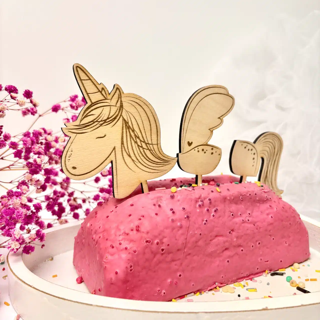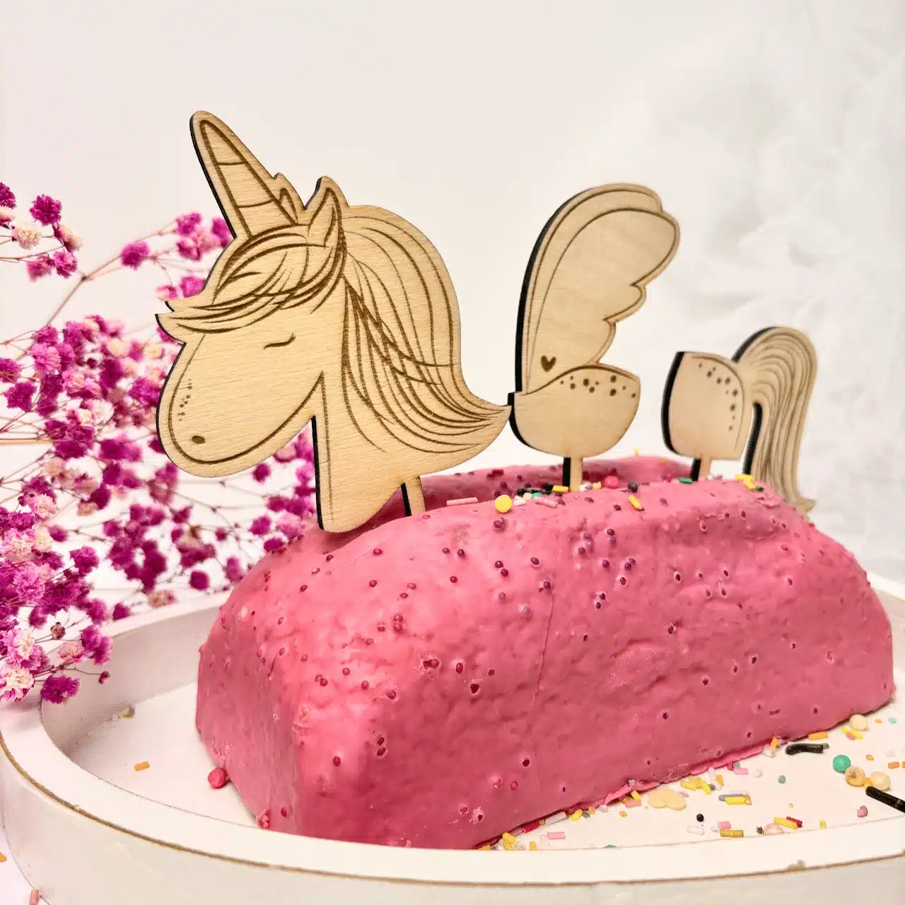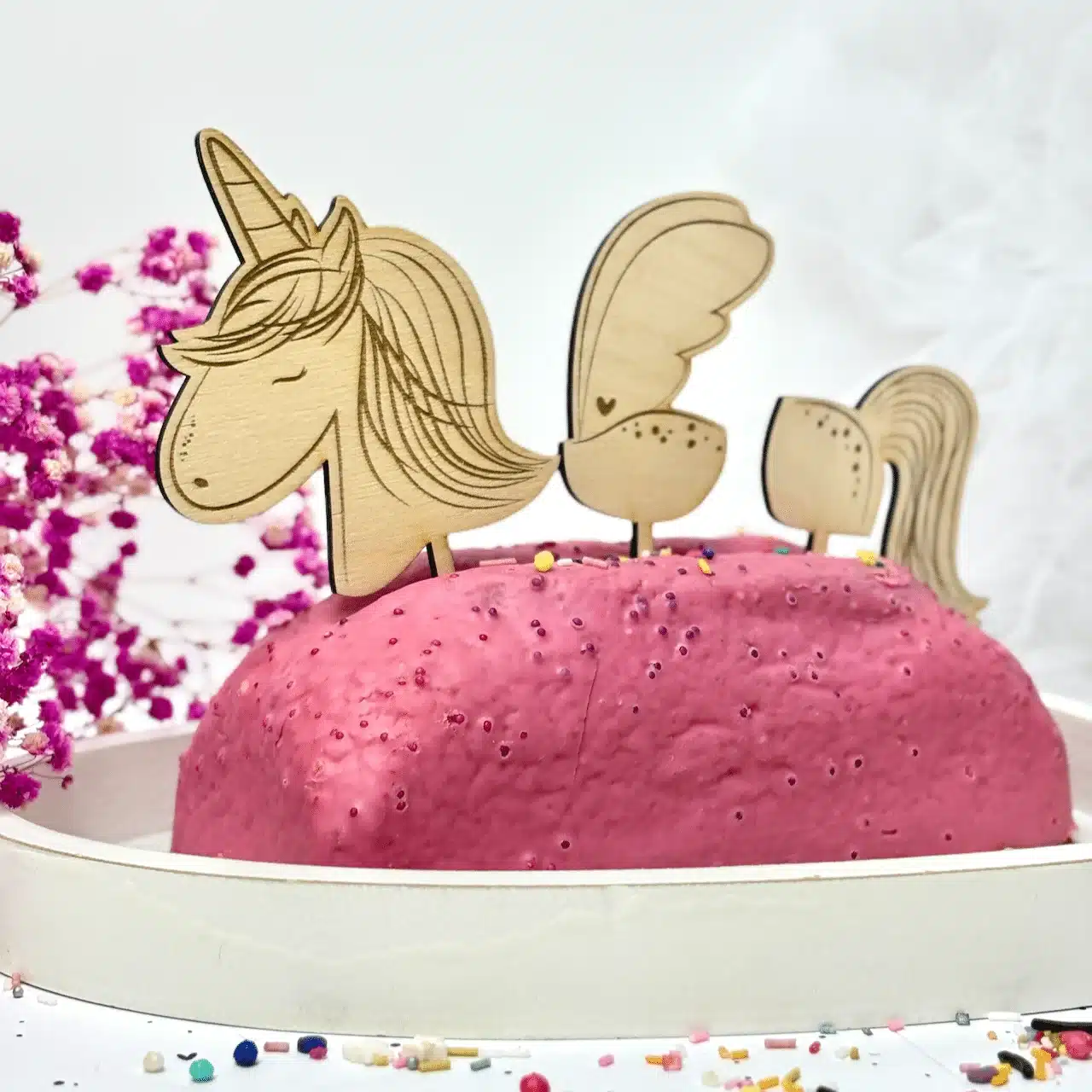 Backe deinen Lieblingskuchen, platziere die 3 Teile des Pegasus Caketoppers darauf und voilà – dein Kuchentisch wird in einen magischen Ort verwandelt!
