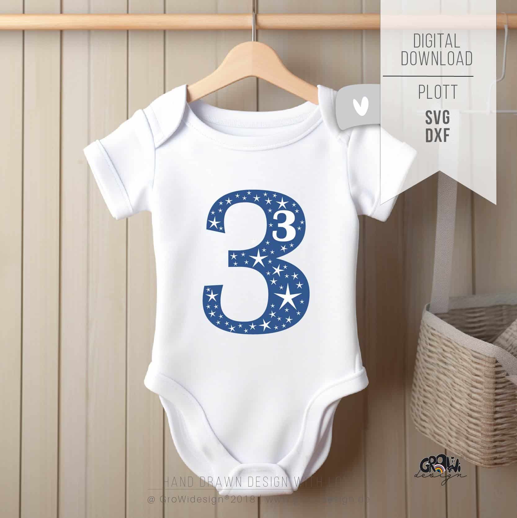 Ein Geburtstagsshirt ist ein absolutes MUST HAVE für jedes Geburtstagskind. Mit dieser Geburtstagszahl kannst du eine tolle Zahl 3 erstellen. Gestalte sie einfarbig oder auch mit farbigen Sternen. Ganz nach deinen Wünschen. Lass Kinder Augen erstrahlen!