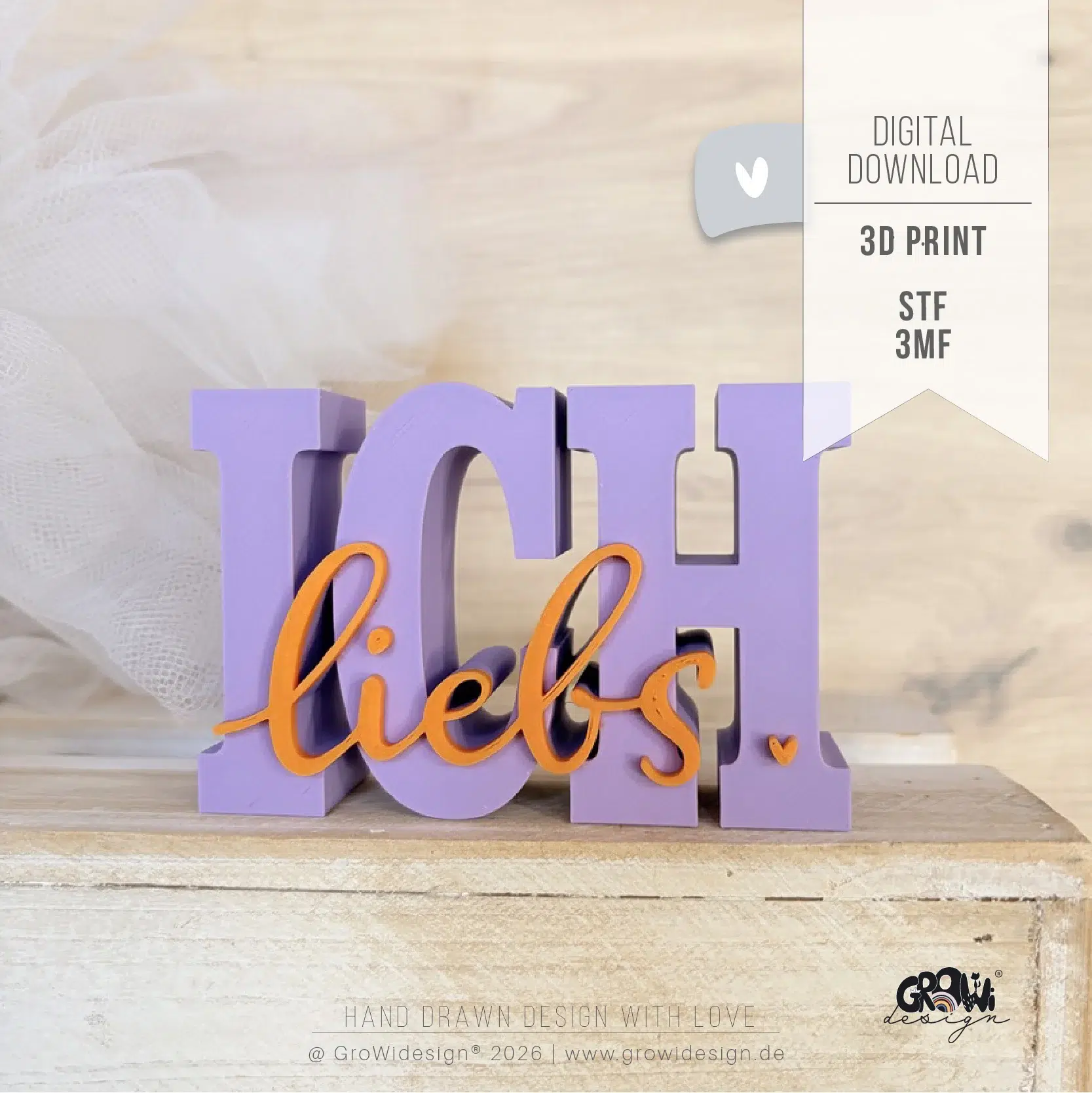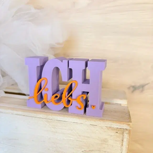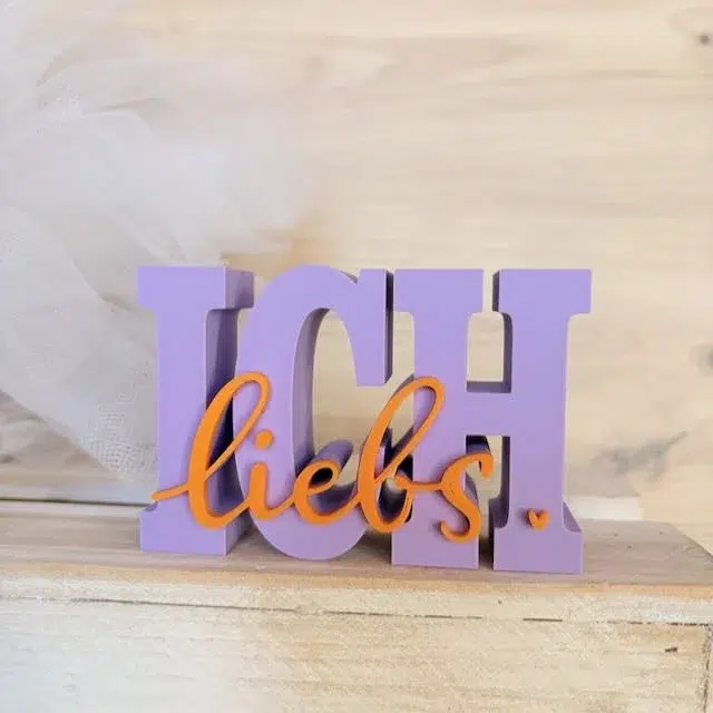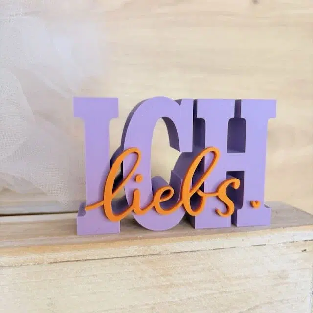 Hol dir unsere ich liebs 3D Druckdatei zum Selberdrucken. Der Schriftzug ist perfekt für deine Home Deko oder als kleines Geschenk.