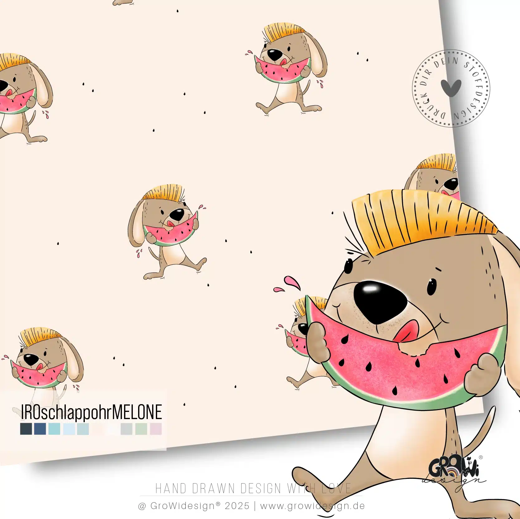 Zustellung: Das IROschlappohrMELONE AOP Stoffdesign wird dir nach Kauf per Email innerhalb 48h zugesendet.