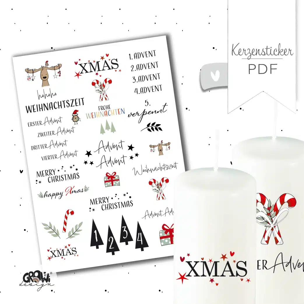 Liebe Weihnachstgrüße! Mit dieser wunderschönen weihnachtlichen Kerzensticker Vorlage verwandelst du Stabkerzen und Stumpenkerzen in einen einzigartigen Hingucker.