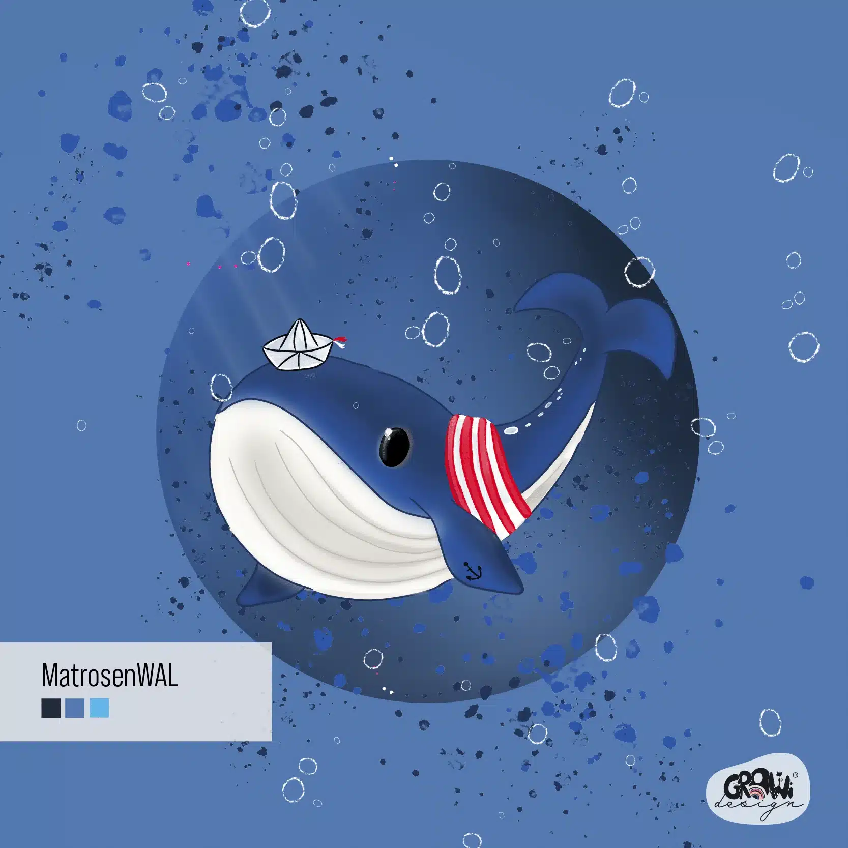 Lass uns in die Tiefen der Meere tauchen. Der knuffige Wal liebt es fröhlich durch die Meere zu schwimmen. Dieses wunderschöne Design besticht durch seine Ruhe und Liebe die es ausstrahlt. Es ist als Panel angelegt und bietet so eine wunderschöne Möglichkeit für einen einzigartigen Stoffdruck. Du möchtest eine andere Farbe oder eine andere Breite? Dann schreib mir doch einfach.
