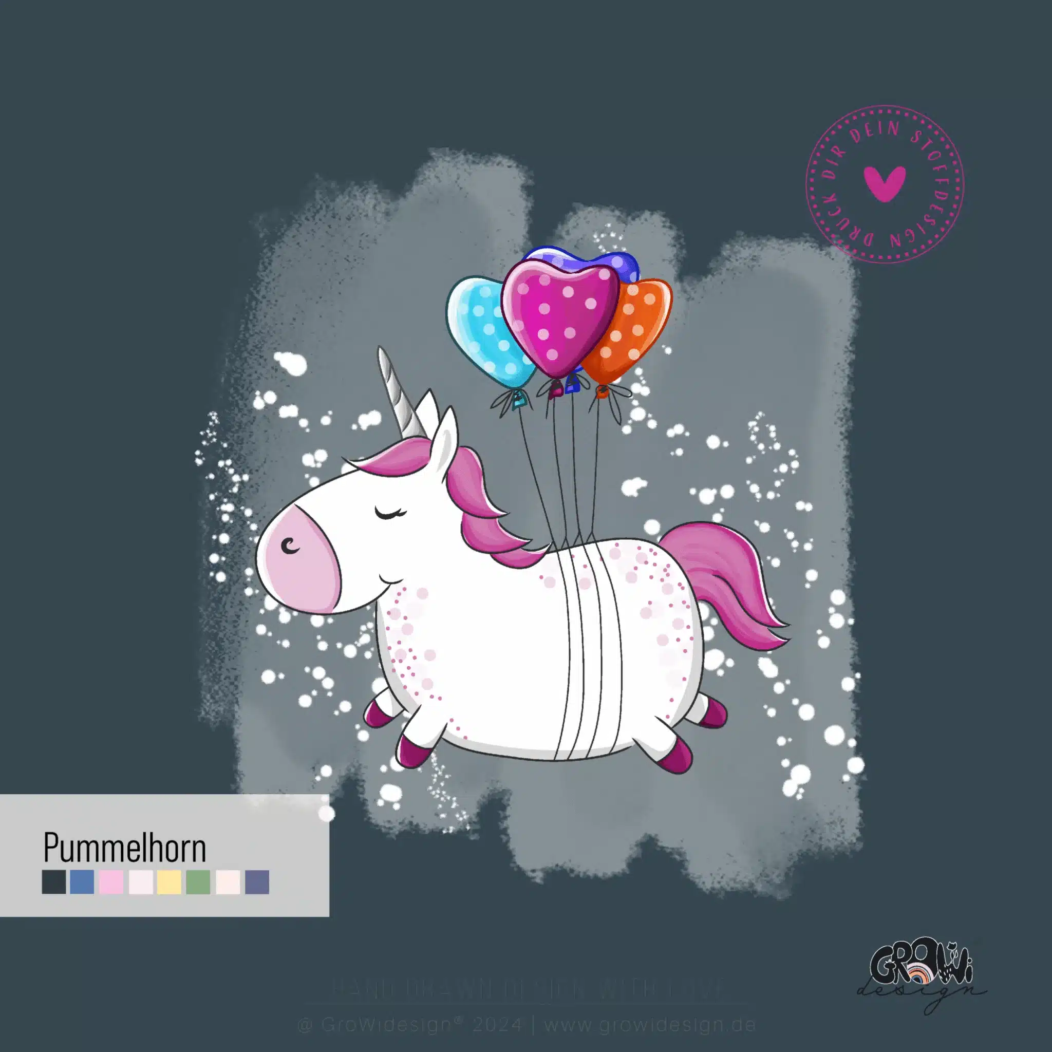 Entdecke unser handgezeichnetes Pummelhorn Stoffdesign und druck dir deinen Stoff. Das Design ist in 8 Farbstellungen erhältlich. Die Farben sind in RGB gehalten und der Rapport misst 80cm x 180cm.