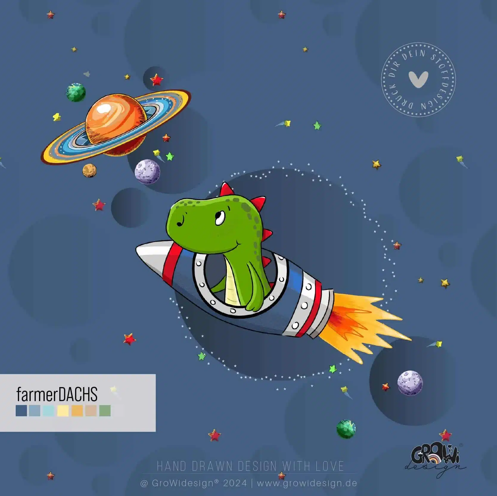 Zustellung: Das raketenDINO Panel Stoffdesign wird dir nach Kauf per Email innerhalb 48h zugesendet.