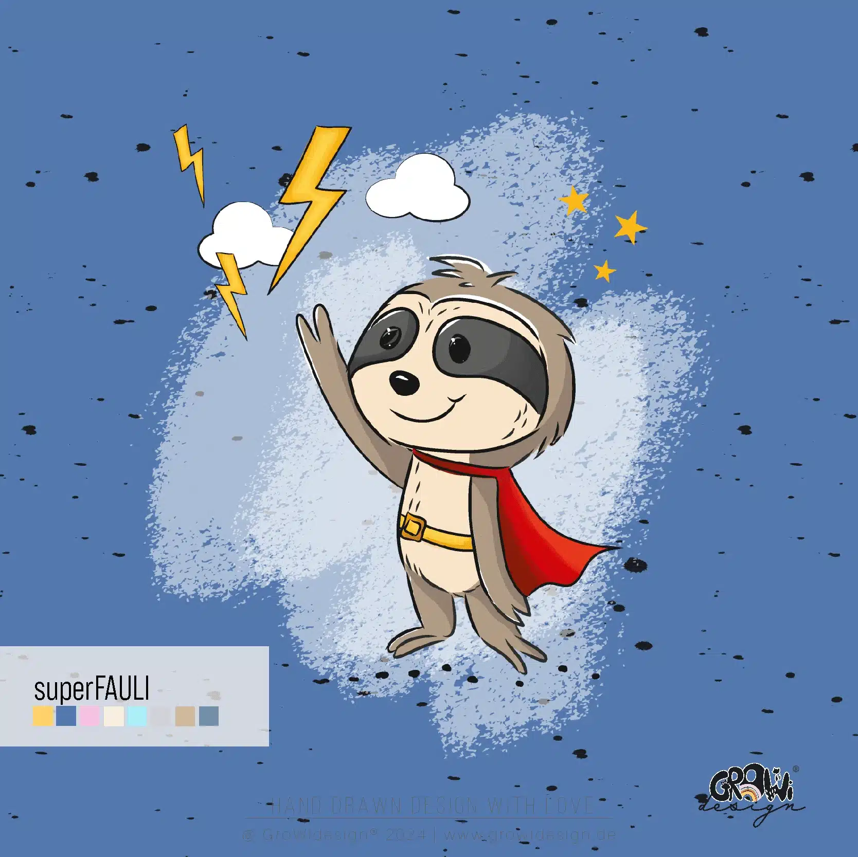 Entdecke unser handgezeichnetes superFAULI Stoffdesign und druck dir deinen Stoff. Das Design ist in 8 Farbstellungen erhältlich. Die Farben sind in RGB gehalten und der Rapport misst 15cm x 15cm. Das Paneldesign ist zu dem mit einem 5cm breiten Randstreifen versehen. Dieser bietet mit seinen Sprüchen und Motiven zusätzliche Gestaltungsmöglichkeiten für alle Nähbegeisterte.
