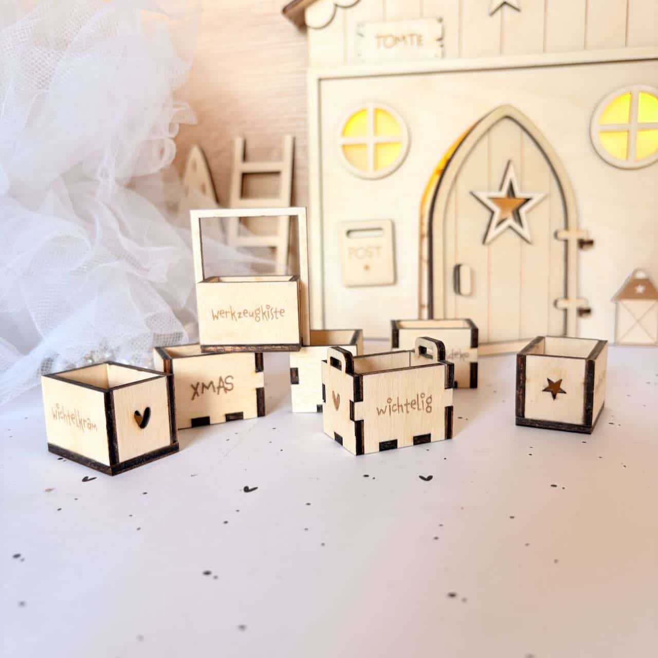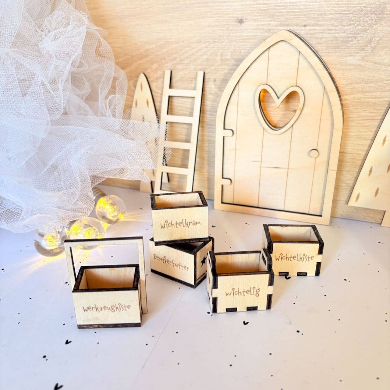 Bringe Magie in deine Wichtelwelt mit unserer Wichtel Holzkisten Laserdatei! Dieses liebevoll gestaltete SVG Set ist die perfekte Ergänzung für alle, die Miniatur-Wichtelhäuser, Wichtelbäckereien oder Adventsdekorationen basteln möchten. Ob kleine Details oder große Highlights. Die Holzkisten lassen sich individuell gestalten und passen perfekt zu deiner skandinavischen Wichtelwelt.