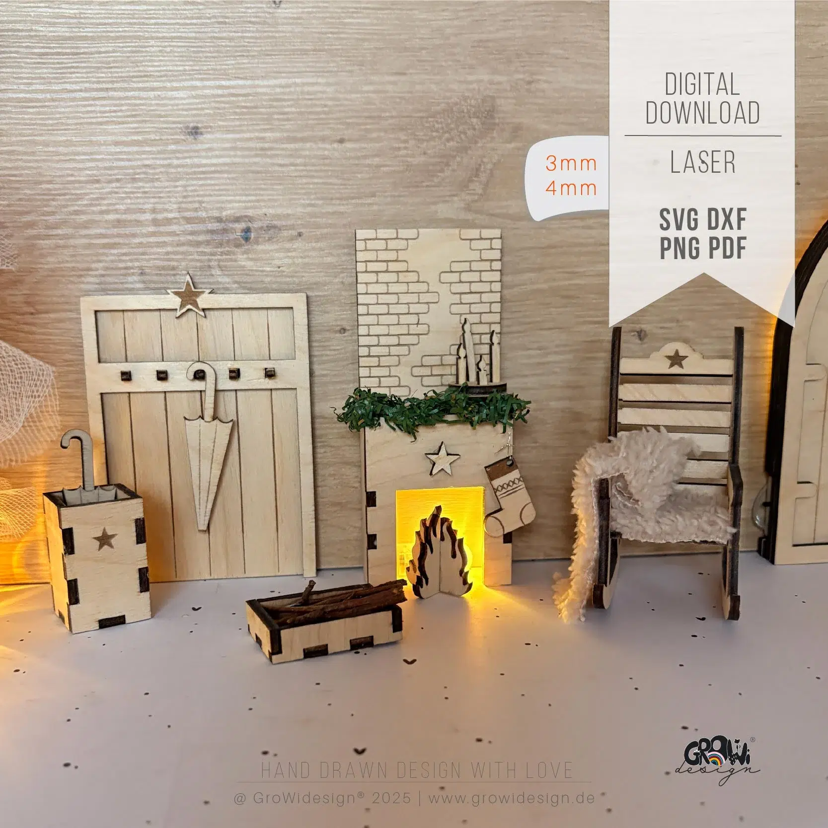 ✭ Du erhältst in diesem Wichtel KAMIN Laserdatei Set: