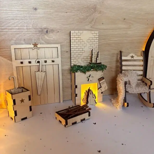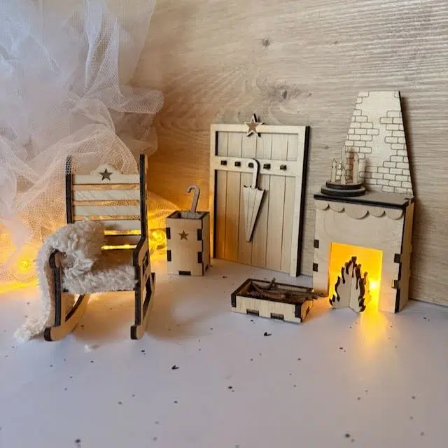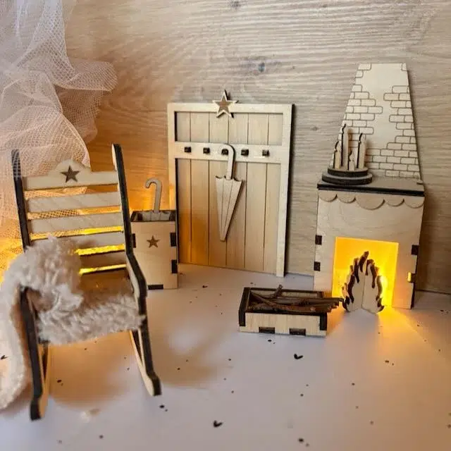 Entdecke unsere zauberhaftes Wichtel KAMIN Laserdatei Set und erweitere deine Wichtelwelt um ein liebevoll gestaltetes Highlight! Dieses wundervolle Set bestehend aus Schaukelstuhl, Kamin und einer Garderobe ist die perfekte Ergänzung für deine Wichteltür und regt noch mehr die Phantasie der magischen Wichtel an. Jetzt kann dein Wichtel endlich schön entspannt in seinem Schaukelstuhl dem Knistern im Kamin lauschen. Ein echtes Highlight für kleine und große Wichtel Fans!
