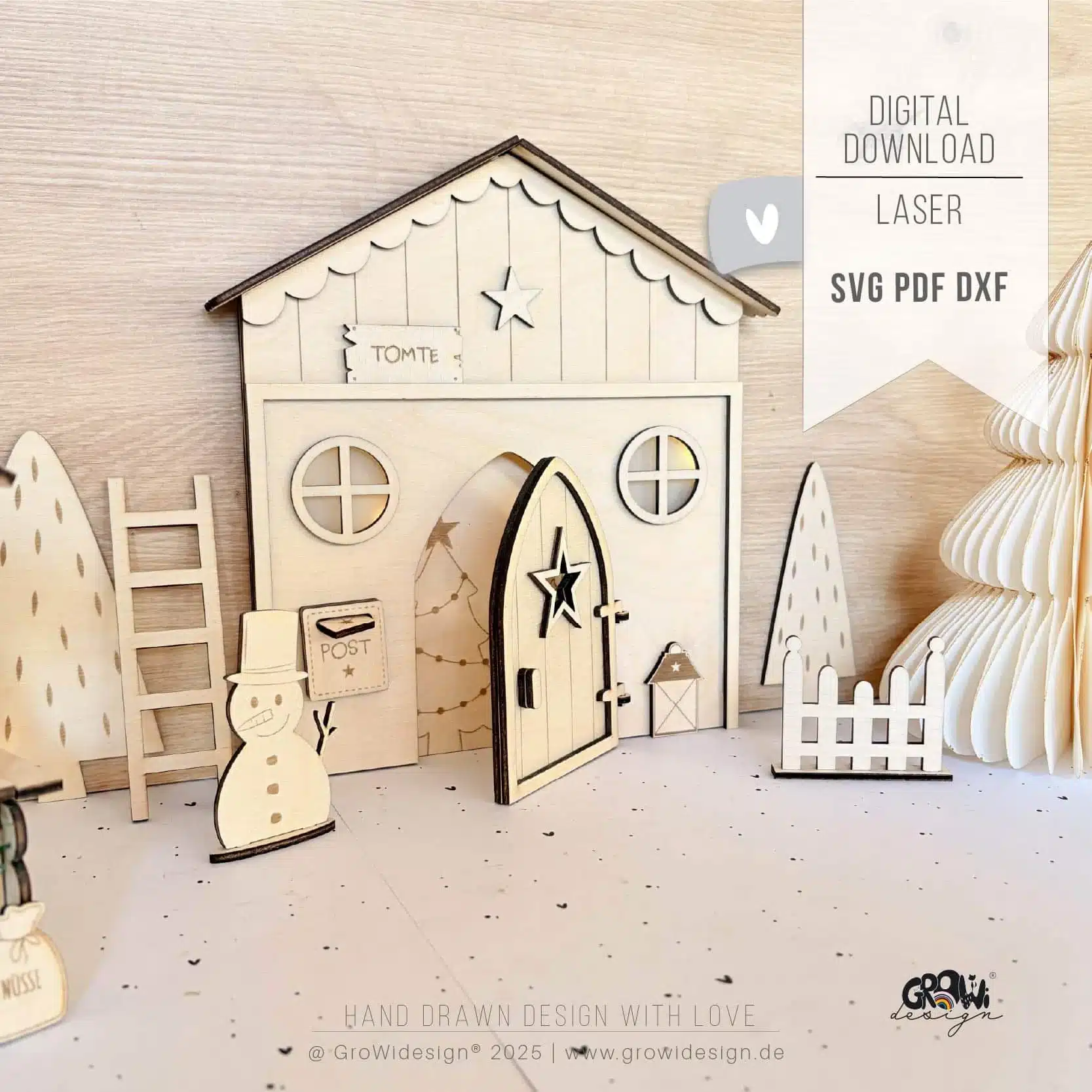 In Skandinavien ziehen jedes Jahr zur Adventszeit kleine Weihnachtswichtel in liebevoll gestaltete Häuschen ein und bringen Freude, Geheimnisse und ein bisschen Zauber in die Weihnachtszeit. Mit dieser Laserdatei für ein Wichtelhaus kannst du dir deine eigene kleine Wichtelwelt erschaffen!