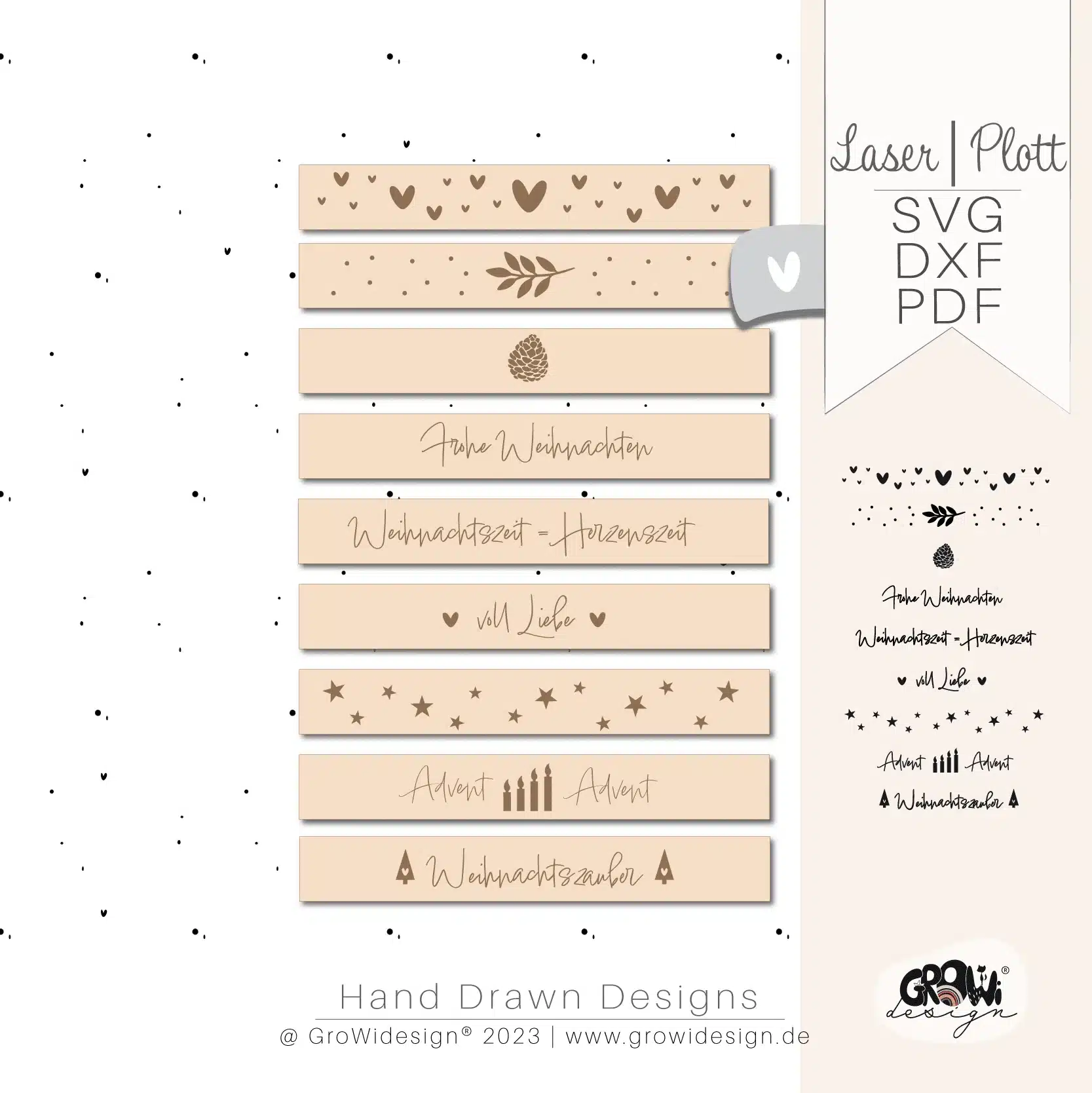 Hol dir unsere vielseitige XMAS Laserdatei und erstell dir wunderschöne weihnachtliche Klötzchen für deine Weihnachstdeko. Die Motive sind als Laservorlage sowie als Plotterdatei angelegt. So kannst du auch mit Vinylfolie und Wasserschiebefolie Dinge aufhübschen. Sei kreativ!
