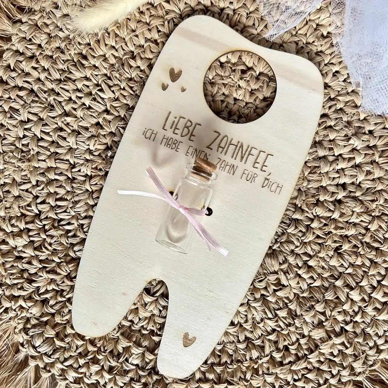 Tauche ein in die zauberhafte Feenwelt! Mit dieser wunderschönen Zahnfee Laserdatei kannst du eine zauberhafte Zahn-Abholstation für die kleine Zahnfee erstellen. Das Zahnschild lasern, ein kleines Reagenzglas dran binden und den Milchzahn hineinlegen und schon kann die Zahnfee kommen. Eine feenhafte Idee für kleine verträumte Kinder! Auch perfekt als kleine Geschenkidee!
